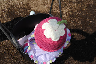 To match JC's pink sweater, I made a pink "upside-down daisy" toque. It's so cute!!